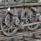 Een kunstontwerp van een stoomtreinwielen.