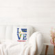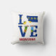 Montana staatsliefde. Montana in helder rood in hoofdletters sans font. Het woord liefde is gevuld met de staatsvlag en de letter O in liefde is gevormd in het silhouet van de staat.