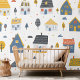 Stad kinder, huizen baby kamer, kinderdagverblijf behang