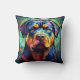 Een goed stevig kussen dat uitstekend past in ons Zen, maar toch kleurige interieur en een ander kussen van dezelfde ontwerper. Mooie kleuren, warmer dan op de afbeelding.