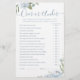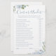 Vermaak je gasten met dit leuke 'over of onder' vrijgezellenfeest spel, met romantische waterverf floral in dusty blue en sage green, en stijlvol modern script, eenvoudig en elegant, geweldig voor modern boho vrijgezellenfeest, botanische tuinbruiloft feestjes. Bekijk alle vrijgezellenfeest games in collectie.