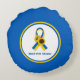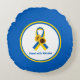 Show uw steun met deze speciale ronde accentuerende kussens met lint in de blauwe en gele kleuren van de Oekraïense vlag met zonnebloemen, de nationale bloem van Oekraïne.