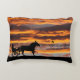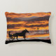 Standardbred draf renpaard bij zonsondergang, Sierkussen. Digitale Art. Silhouet van standaard raspaard en chauffeur joggen bij zonsondergang. Volledig aanpasbaar; maak het uw eigen.