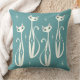 Mijn oorspronkelijke vectorillustratie van halverwege de eeuw inspireerde katten, met zetbursten en diamanten, in ivoor, met hints roze, aqua en donker blauwgroen op een getextureerde blauwe achtergrond.