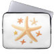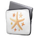 An illustration of a big yellow starfish surrounded by other smaller starfish. The starfish looks simple in this illustration.