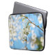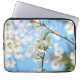Een tak met een volledig opgeblazen witte Magnoliebloem. Een ontluikende tak die erop blijft staan. En een achtergrond van veel bloeiende takken tegen een blauwe hemel. Foto Copyright ©2022 Kimberly J Tilley. zazzle.com/store/developingnature