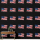 Een patriottisch eerbetoon aan de Verenigde Staten van Amerika. De Amerikaanse vlag vliegt hoog in de sterren. Het Amerikaanse vlagontwerp van sterren en strepen drijft in de ruimte en maakt een perfect geschenk voor 4 juli Onafhankelijkheidsdag, patriottische feestdag, militair eerbetoon of voor iedereen die patriottisch is over de Verenigde Staten.