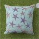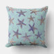 Starfish in het Zand Blauwgroen Sierkussen. Blauwgroen zwart, paars, taupe, grijs en bruin zetmeel in ondiep water op twee verschillende schalen. Groter aan de voorkant en kleiner aan de achterkant. In de openlucht, binnenshuis, in de oceaan, aan de kust, in de nautische zee, op het strand thuis geïnspireerd huis, en onderhoudend decor.