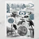 Veel plezier met deze en steampunk geïnspireerde collage. Ideaal voor elke reiziger. Het ontwerp omvat brillen, tijdreizigers, klok, typemachine, ventilator, vliegmachines, stoommotoren, tandwielen en meer. Geweldig geschenk.