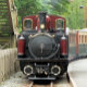 Wales, het land van de kleine stoomtreinen. Een prachtig geconserveerde rode trein en groene wagens vol passagiers.