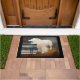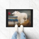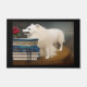 Steampunk dieren AI. Ontwerp van een hond en boeken. Heel steampunk. Een kunstmatig intelligentiestuk. Welkom bij ons thuis. hond. Amerikaanse Eskimo-hond met boeken op een deurmat. Geweldig voor boekliefhebbers. Geweldig voor hondenliefhebbers.