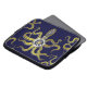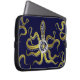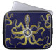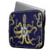 Dit tentacled steampunk-zee monster heeft acht widerachtige gouden aanhangsels, een centrale zilveren versnelling en veel tandwielen en bouten die zijn kop, ogen en zuigbekers vormen. Het is een robotoctopus / kraken, een monster van een metalen machine voor iedereen die van geeky science-fiction / fantasie schepsels houdt. Op deze laptophoes reiken tentakels ook vanuit de hoeken binnen. De blauwe achtergrondkleur is aanpasbaar.