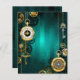 Juwelen, gouden horloge met een gouden ketting en sleutels op een groene texturele achtergrond. Steampunk.