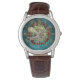 Steampunk inspireerde industrieel roestachtig klokwerk, en octopus design op een levendige blauwe patina achtergrond.