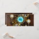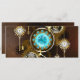 Turkooizen lenzen met een antieke horloge met messing tandwielen en gouden sleutels op een roestige, bruine achtergrond. Steampunk stijl.