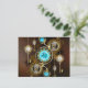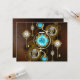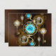 Turquoise-lenzen met een antiek horloge met messing tandwielen en gouden sleutels op een roestbruine achtergrond. Steampunk.