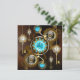Turquoise-lenzen met een antiek horloge met messing tandwielen en gouden sleutels op een roestbruine achtergrond. Steampunk.