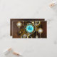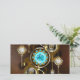 Turquoise-lenzen met een antiek horloge met messing tandwielen en gouden sleutels op een roestbruine achtergrond. Steampunk.