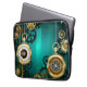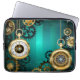 Steampunk-sieraden Horloge op een groene achtergro Laptop Sleeve