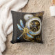 Antiek wijzerplaten met goud- en messenmazen, versierd met een mechanische libel op een bruine, gestreepte ondergrond. Steampunk.