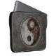 Deze unieke steampunk yin yang illustratie kenmerkt oud korstgeel en vaste metalen rivetten. Een kant van de yin yang lijkt de binnenkant van een complexe machine te zijn, terwijl de tegenovergestelde kant het uiterlijk van een massief staalstuk heeft. De metallische texturen en de korstkleuren geven dit symbool voor evenwicht een sterk industrieel gevoel. Dit unieke ontwerp is een mooie en stijlvolle interpretatie van dit oude symbool.