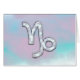Een parelmoer stijl Capricorn sterrenbeeld symbool op een zachte mix van pastel roze en blauwe print achtergrond. Een elegant ontwerp voor een geweldig persoonlijk verjaardagscadeau-idee voor haar.