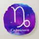Steenboksymbool in het wit met een paarse en blauwe ruimtenevel en het woord "Steenbok".