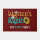 Pro Choice front door mat is voorzien van retro-stijl "vrouwenrechten zijn mensenrechten" tekst met madeliefje en zonnebloempjes op donkerrode achtergrond.