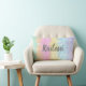 Dit schattige kussen voor meisjes is voorzien van veelkleurige pasteldasstrepen, samen met een tekst-sjabloon voor eenvoudige personalisatie!