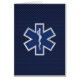 Het symbolische ontwerp van de Kaduceus Star of Life Paramedic, dat hier wordt voorgesteld op een blauw koolstofvezel zoals een gedrukte achtergrond. Het paramedische symbool van de ster van het leven is ontworpen om eruit te zien alsof het van zilverchroom is gemaakt. Goed voor een afstuderen, een verklaring voor je beroep, of voor een cadeau met die medische zorg die je zoekt.