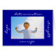 Wenskaart van aanmoediging met een afbeelding meisje dat haar spieren buigt, en blauwe lucht op de achtergrond. Berichten:" Sterke Hoop moedige bepaling". Pas je bericht aan! Fotografie van Maria Santos (Lusinhas do Sul)