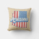 Stijlvol kussen met gooien beschikt over Amerikaanse sterren en strepen gevuld Arizona state silhouet, met retro stijl tekst, op lichte faux burlap achtergrond.
