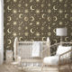 Sterren manen ruimtethema op bruin behang