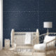 Mooi behang beschikt over honderden gouden sterren op een donkerblauwe achtergrond van de nachtelijke hemel. Kan worden gebruikt voor muren, plafonds en veel andere doe-het-zelfprojecten.