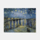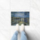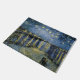 Thatched Cottages in Cordeville. Vincent Willem van Gogh Nachtlandschap in donkerblauwe en gele tinten. Er is een brug over de rivier. Op de voorgrond lopen een man en een vrouw langs de dijk. De sterren schitteren in de lucht. De reproductie van bekende kunstwerken in het publieke afbeelding.