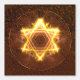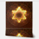 Een heldere, vuurachtige, fractale Davidster op een roodachtige achtergrond.