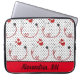 Deze witte laptop is versierd met rode en zwarte stethosces en rode harten op een zwarte en witte poka stipachtergrond. Pas het aan met uw gewenste naam en referenties en geef het als geschenk aan uw favoriete zorgverlener of houd het voor uzelf. Het ontwerp omvat copyrightmateriaal van Cricut.