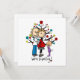 Een schattig stokmodel, geweldig voor ouders van een peutermeisje die baby nummer twee verwachten! Hij heeft een stokfiguur vader, verwachtende moeder en peutermeisje voor de vakantieboom. De tekst luidt: We verwachten!