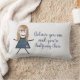 Stick girl met rode ogen, haar, denim blue jurk, en inspirerend citaat op witte achtergrond. Het citaat kan worden veranderd.