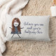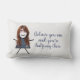 Stick girl met rode ogen, haar, denim blue jurk, en inspirerend citaat op witte achtergrond. Het citaat kan worden veranderd.