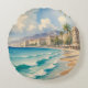 Franse en Europese reisadvertenties - strand, dorp, mensen, bomen, blauw zee en sky-illustratie