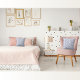 Dit , stoffige blauw-witte dessin heeft een Italiaans mediterraan esthetiek - geschikt voor kust-, vrouwelijke en elegante interieurs.