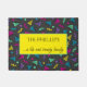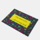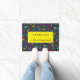 De mooie Memphis-stijl van 80 is een welkome mat, deze mat zal op je veranda opvallen. Met een donkere achtergrond met kleurrijke roze, paarse blauwe driehoeken, stippen en zags is er een gele doos in het midden met een groene omtrek. Helder en kleurrijk, koop vandaag nog uw exemplaar!