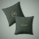 Een stijlvol en elegant kussen in Forest Green kleur met een gouden naam en monogram letters op de achterkant voor uw huisdecoratie.