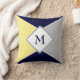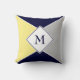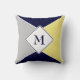 Eenvoudig maar stijlvol MONOGRAM-Sierkussen met driehoeken en vierkant in de kleuren NAVY, GEEL en SILVER GRAY. Matching Fleece Blanket beschikbaar. Ideaal voor een nautisch decor-thema voor thuisgebruik of voor diegenen die op zoek zijn naar het ultieme, lichtgevende kleurenschema.
