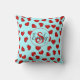 stijlvol monogram rood hartpatroon op blauw blauwg kussen