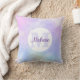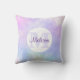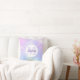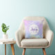 Een kussen met een prachtig abstract patroon. Paarse, roze en blues mengen, mengen en vloeien samen naar creëer een elegant en mooi waterverf abstract design. Een witte cirkel gelaagd over bovenkant met een naam en monogram initiaal binnen.