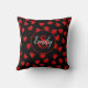 stijlvol rood hartpatroon op zwart aangepast monog kussen