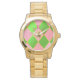 Stijlvol roze en groen goud Argyle Monogram Horloge
