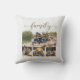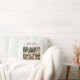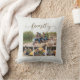 Stijlvolle witte decoratorkussen, voorzien van vier van uw favoriete familiefoto's. Tekst in een schattig, griezelig script zegt: "familie."
